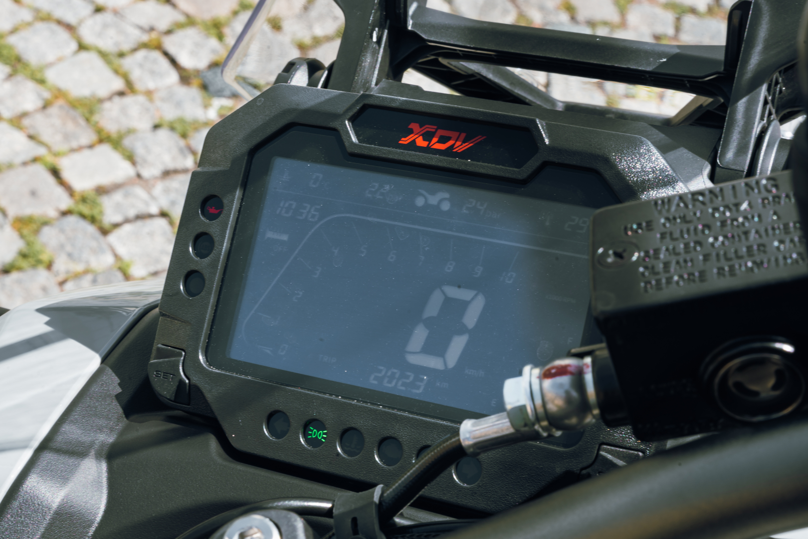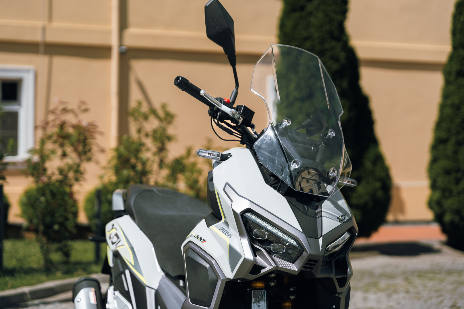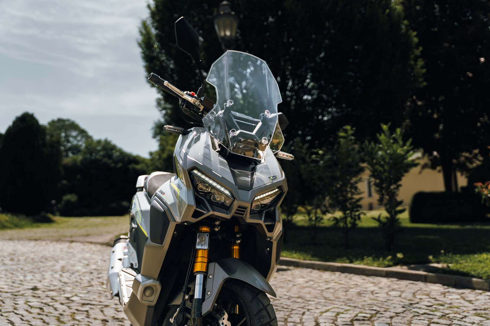 TFT ekran od 5 inča, ABS sistem kočenja. UPSIDE DOWN viljuška. Keylees sistem paljenja. Grejači ručica.
