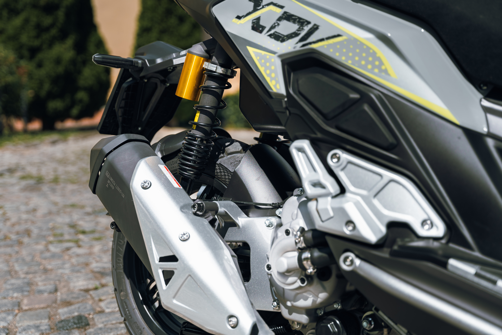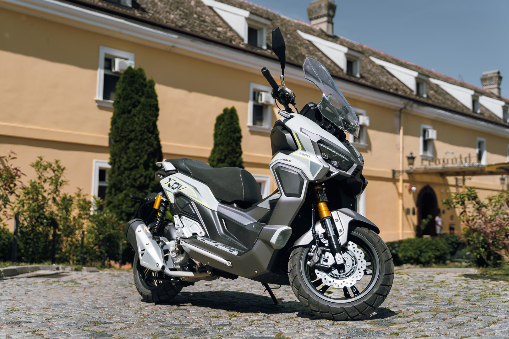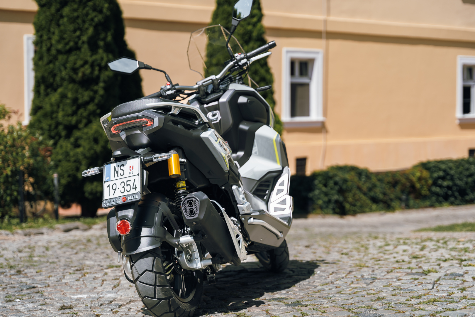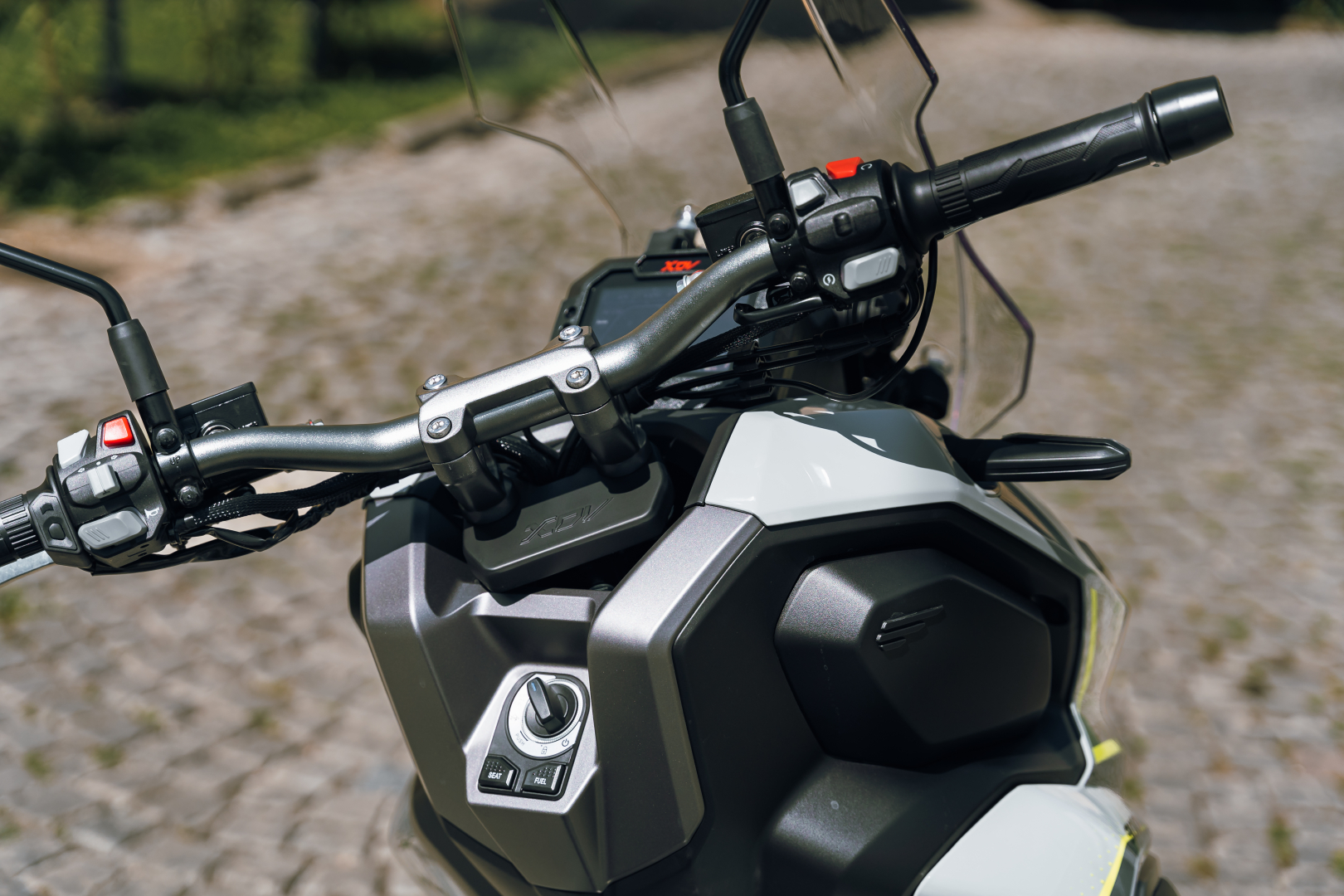 TFT ekran od 5 inča, ABS sistem kočenja. UPSIDE DOWN viljuška. Keylees sistem paljenja. Grejači ručica.